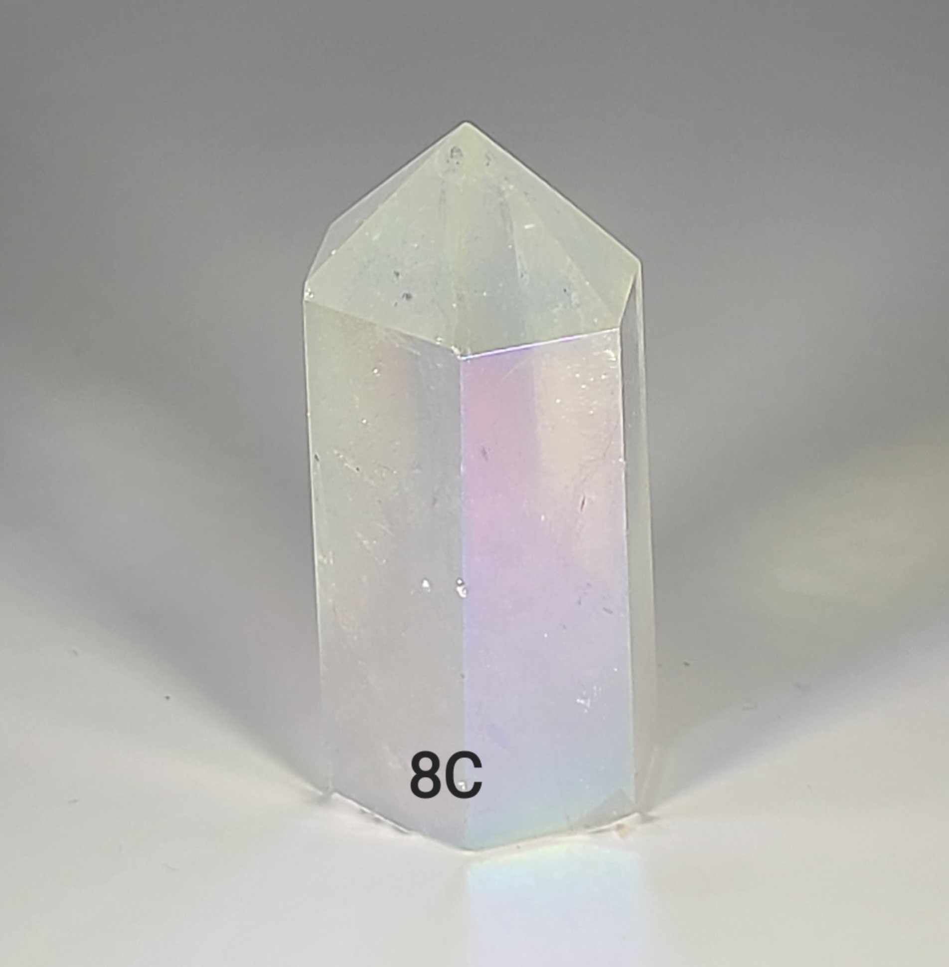 Aura Quartz is said to have a high vibration that can raise one's consciousness, encouraging peace, tranquility, and inner clarity. Clear Quartz bonded with Platinum; creates a pearly sheen with pale rainbow iridescence. Opal Aura has a very intense, strong energy that cleanses the aura, and stimulates, balances and clears all chakras, integrating the light body into the physical dimension. It allows access to one’s personal etheric realm where information concerning balance for this life cycle is presented. It is a crystal of joy, and like a rainbow, signifies hope and optimism. It facilitates a deep state of meditative awareness, grounding the information received into the physical body, and inspires a total union with the divine and cosmic consciousness. Opal Aura is also a stone of romance and love, and can bring both into one’s life. It is highly beneficial in healing hurt and trauma, for multi-dimensional healing, and is an efficient receptor for programming. It may be used for cleansing and enhancing the organs, boosting the immune system, and for bringing the body into balance. It is also thought to soothe burns.