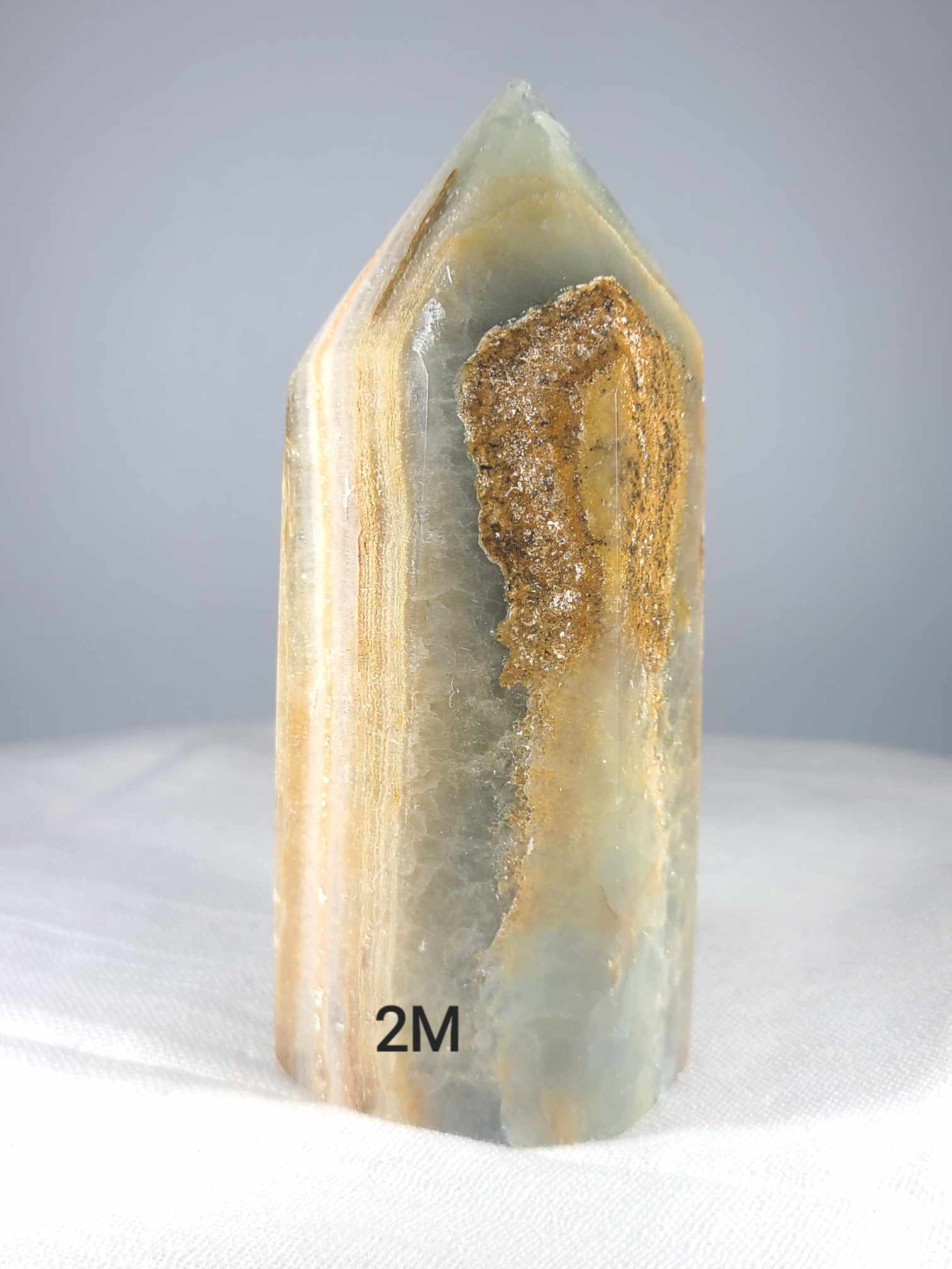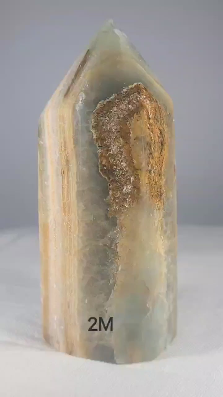 Experience inner peace with Blue Onyx Tower. This grounding stone provides emotional balance and clarity of thought, making it perfect for times of pressure. Its calming energies also promote a sense of security, making you feel safe and comfortable in any environment. Own the strength of the mind and spirit with Blue Onyx. This Tower is 4.50 inches tall.