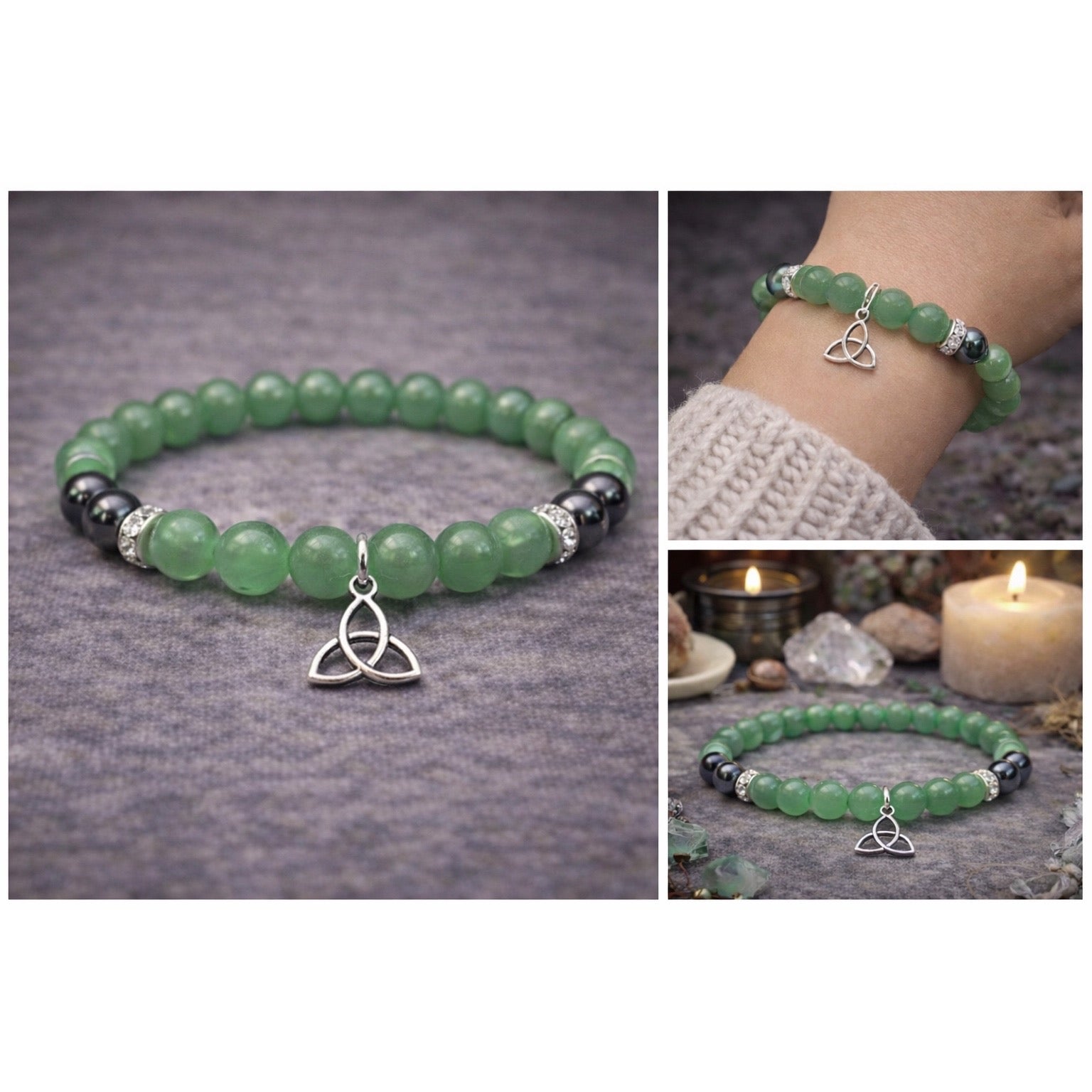 Green Aventurine Hematite Bracelet Boho Witchy Grounding Crystal Jewelry