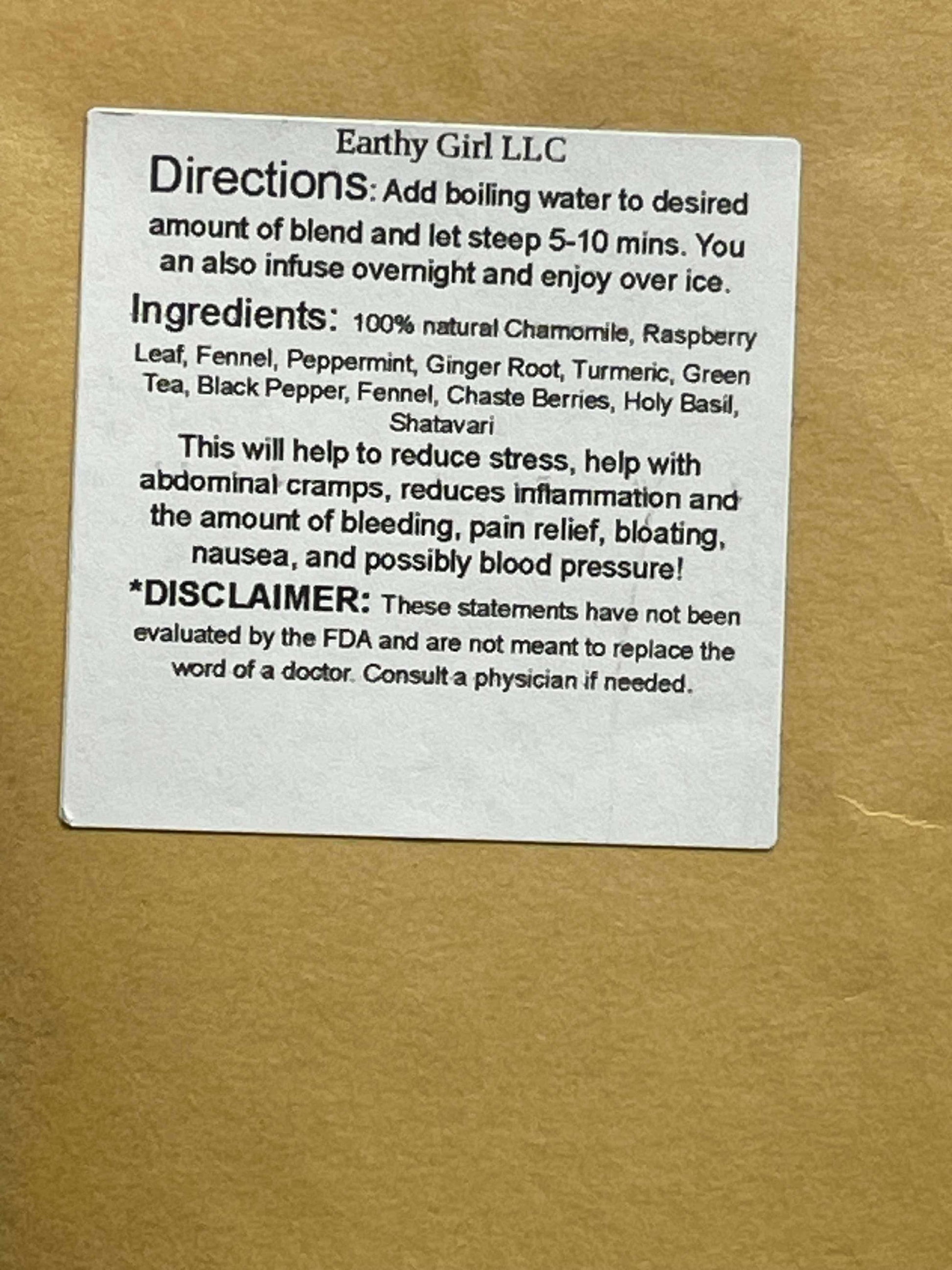 Chamomile adds a soft, calming note, while raspberry leaf and holy basil bring an earthy, nurturing base. Fennel and peppermint lend a refreshing lift, and ginger, turmeric, and black pepper add a touch of warmth. Green tea, chaste berries, and shatavari round out the blend with deeper herbal character and balance.