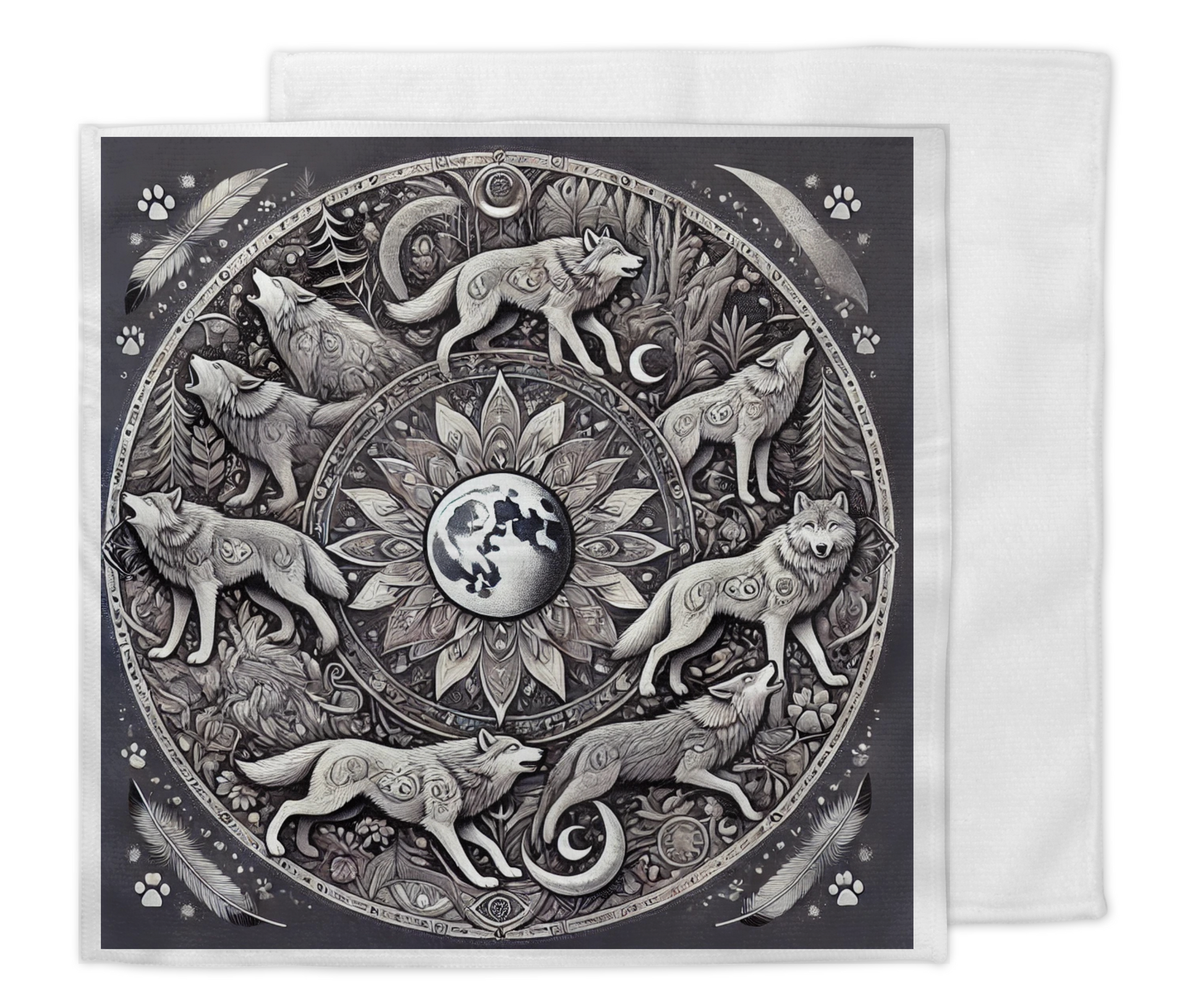 Embrace the call of the wild with the Lunar Wolf Altar Cloth, a breathtaking piece that blends celestial energy with the spirit of the wolf. This intricately designed 11.5" x 11.5" altar cloth features a stunning mandala centerpiece surrounded by wolves, paw prints, and celestial symbols, evoking themes of strength, intuition, and connection to nature.
