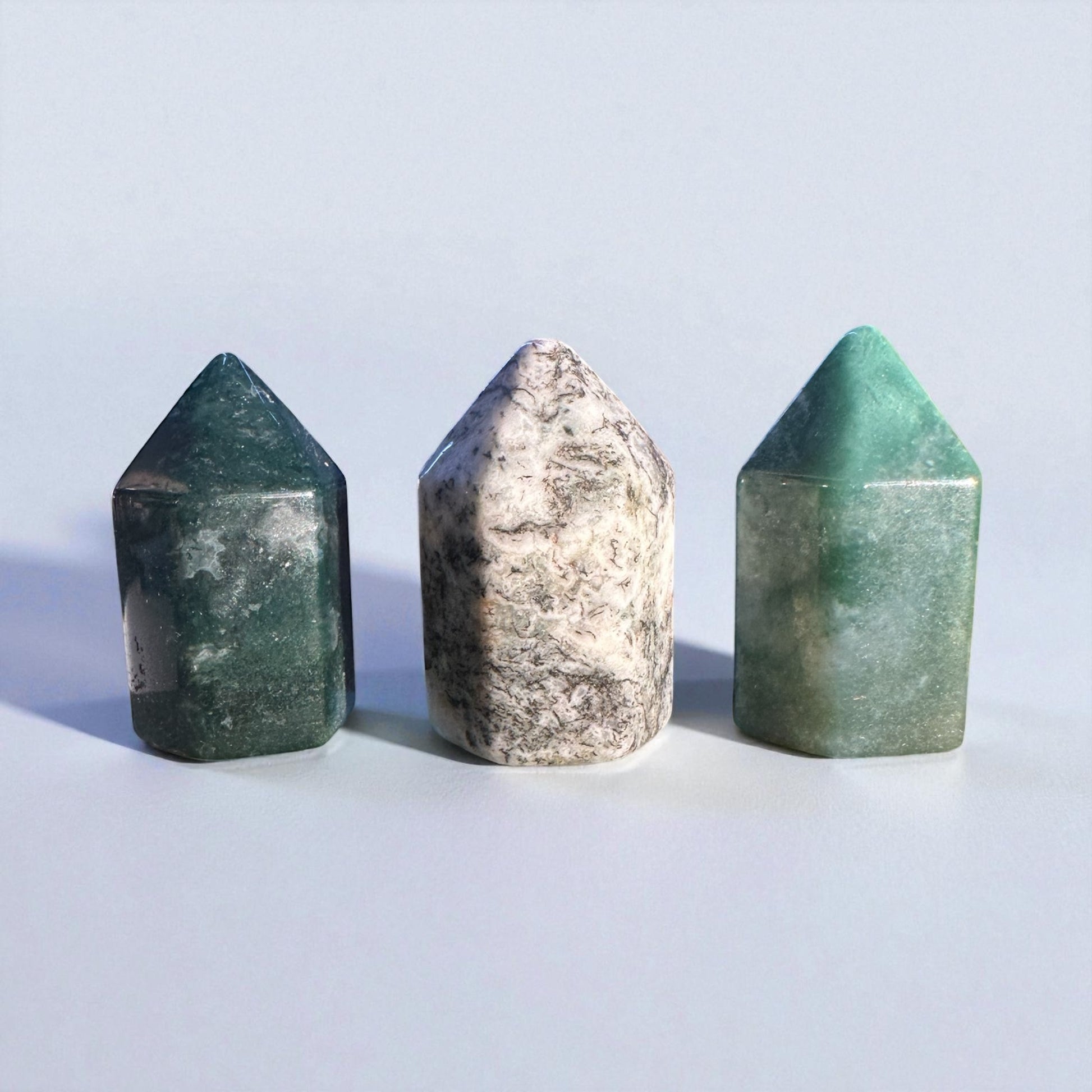 Moss Agate / Tree Agate Towers – Growth • Grounding • Nature Energy