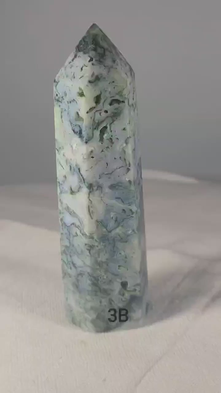 Experience the stabilizing and strengthening influence of our Moss Agate Tower. This stone has a lower intensity and slower frequency, perfect for balancing your emotional, physical, and intellectual energy. With its harmonizing effects on yin and yang, it opens the doors to new beginnings, enhances creativity, intuition, abundance, prosperity, and protection while grounding you to the present moment. Perfect for connecting with the heart chakra. This tower is 3.5 inches tall.