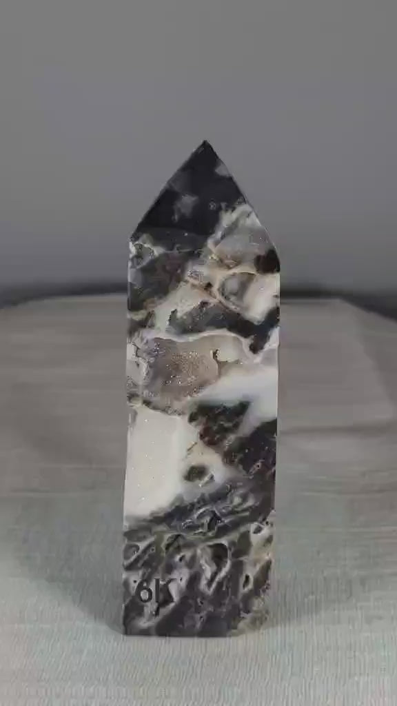 Enhance your intuition and discernment with our Sphalerite Tower. This crystal activates the sacral chakra, promoting clarity of thought and vitality. Use it for healing, creativity, and decisive decision-making. Don't let bogus information hold you back. Trust in Sphalerite's powers of inspiration and balance. This Tower is 3.75 Inches tall.