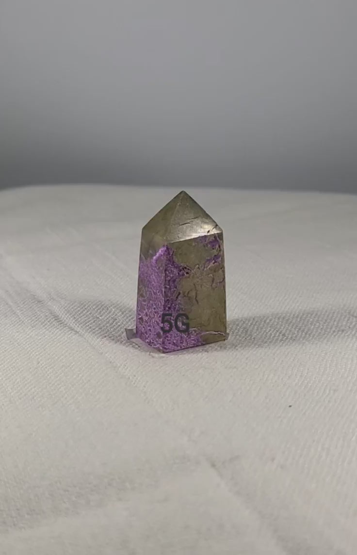 Experience a deeper connection to love, forgiveness, and spirituality with the Stichtite in Serpentine Tower. This powerful stone stimulates the mind, soothes the body, and provides spiritual support. Enhance your connection to nature and find your purpose in life with ease. Fearless and inspired, activate your Kundalini energy with this must-have stone. This stone is approximately 2 inches tall.