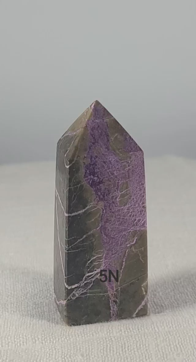 Experience a deeper connection to love, forgiveness, and spirituality with the Stichtite in Serpentine Tower. This powerful stone stimulates the mind, soothes the body, and provides spiritual support. Enhance your connection to nature and find your purpose in life with ease. Fearless and inspired, activate your Kundalini energy with this must-have stone. This stone is approximately 2.5 inches tall.