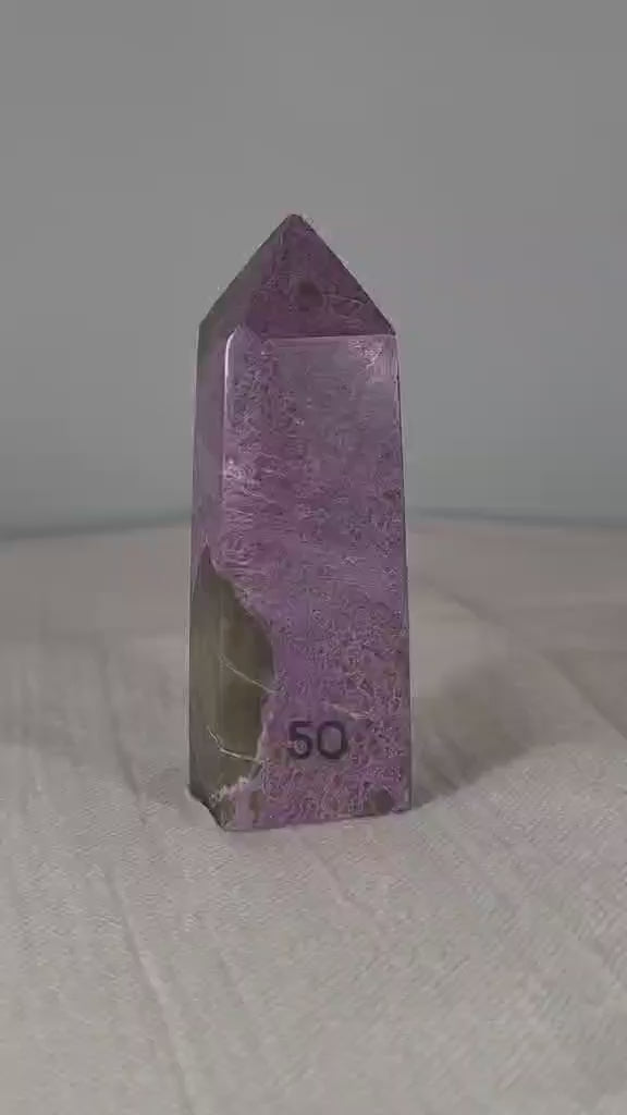 Experience a deeper connection to love, forgiveness, and spirituality with the Stichtite in Serpentine Tower. This powerful stone stimulates the mind, soothes the body, and provides spiritual support. Enhance your connection to nature and find your purpose in life with ease. Fearless and inspired, activate your Kundalini energy with this must-have stone. This stone is approximately 3.5 inches tall.