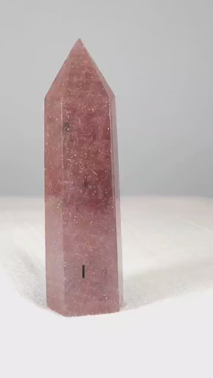 This Strawberry Quartz Tower is 3 inches tall and crafted from the powerful Strawberry Quartz mineral. Known for its healing properties, this tower can aid in emotional well-being, growth, and passion. Perfect for those looking to balance their Heart Chakra and cultivate a sense of inner peace.